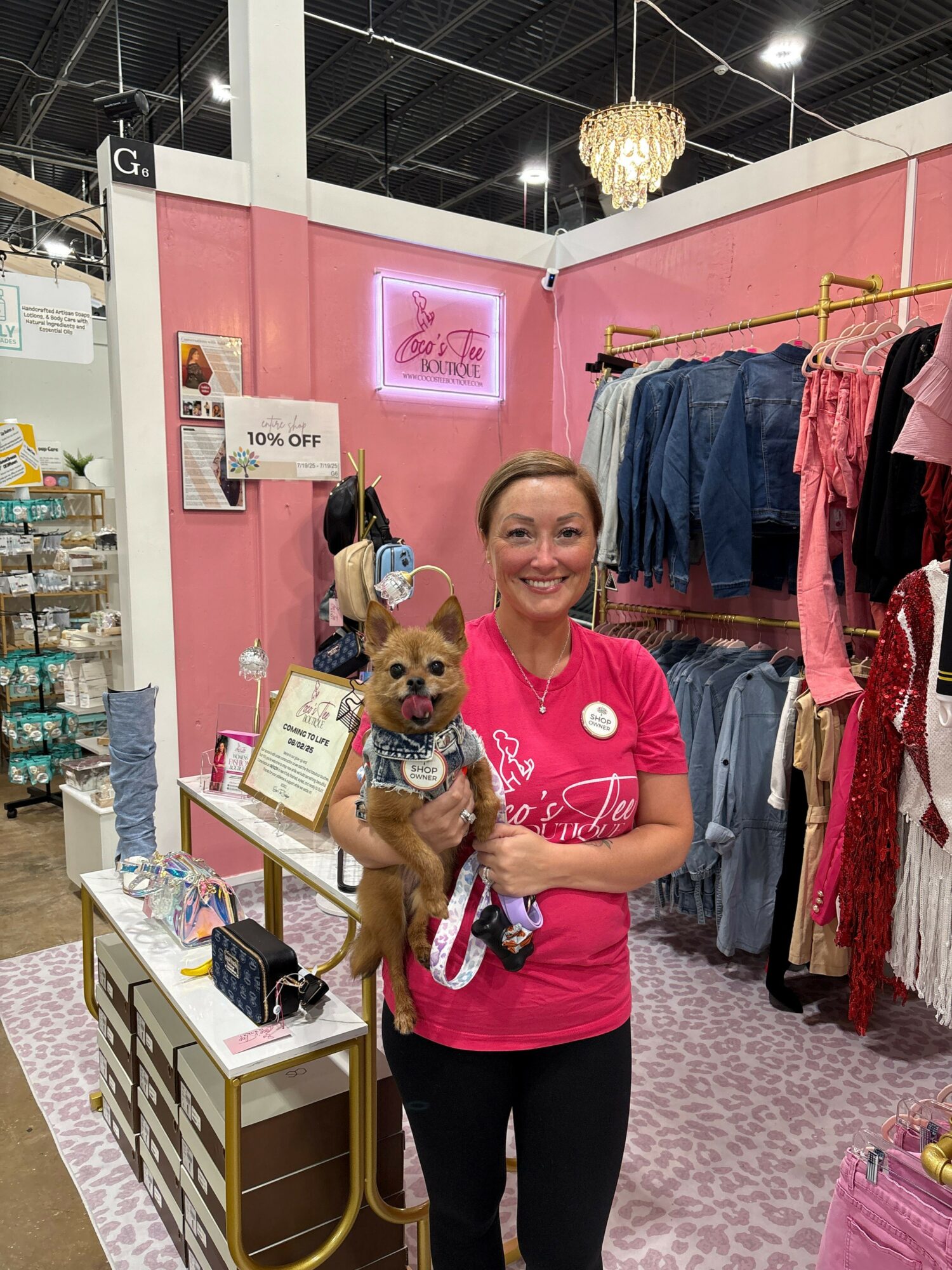 Honestly, I’m not even sure what “normal” looks like anymore—in the best way possible! Since Coco’s Tee Boutique has really taken off, my days are a blend of structure and hustle. I still work full-time as an Administrative Manager, which takes up most of my day. But once I clock out, it’s time to put on my boutique owner hat. Evenings and weekends are dedicated to all things Coco’s—packaging orders, making post office runs, scheduling content for social media, and responding to customer emails. I recently opened a booth at Painted Tree Boutiques in Ballwin, MO, so I’m often there too, making sure everything looks great and stays stocked. It’s a lot, but I’ve learned how to create balance between both worlds—and I genuinely love the pace.