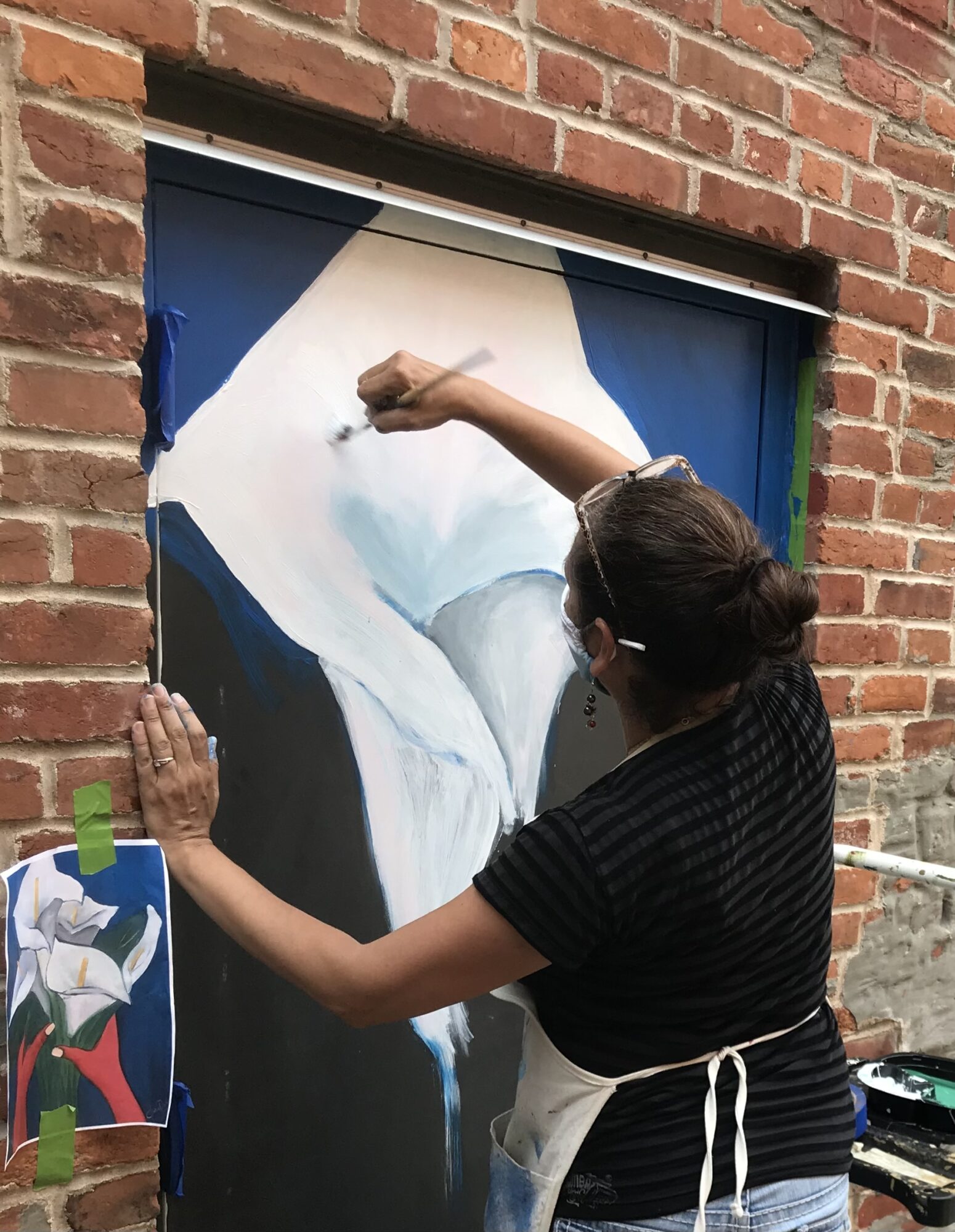 Over June and July of 2020, seven artists and I painted 30 doors. Despite the summer heat, we were grateful to be outside, painting and feeling the appreciation of the neighbors. Their distant words of encouragement motivated us to complete the task. In some cases, it was quite moving. At the end of the day, the residents, many of whom were seniors living alone, came out to admire our work, expressing their love and gratitude also from the distance.