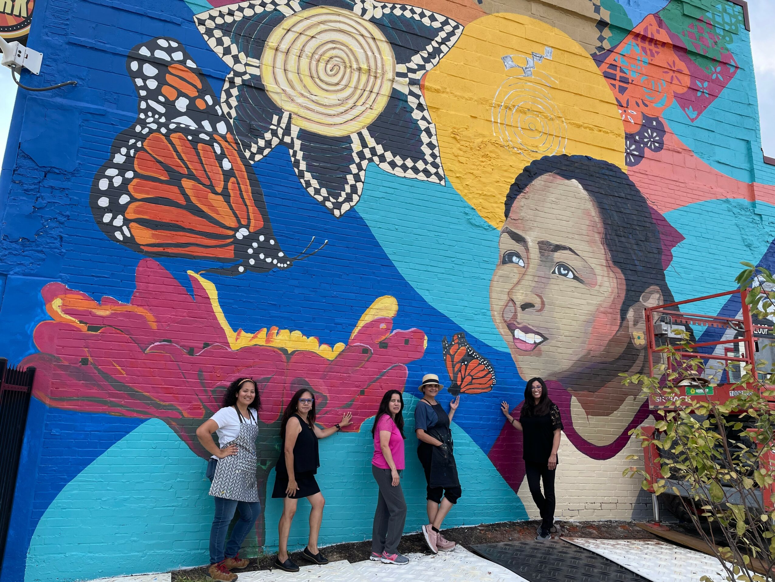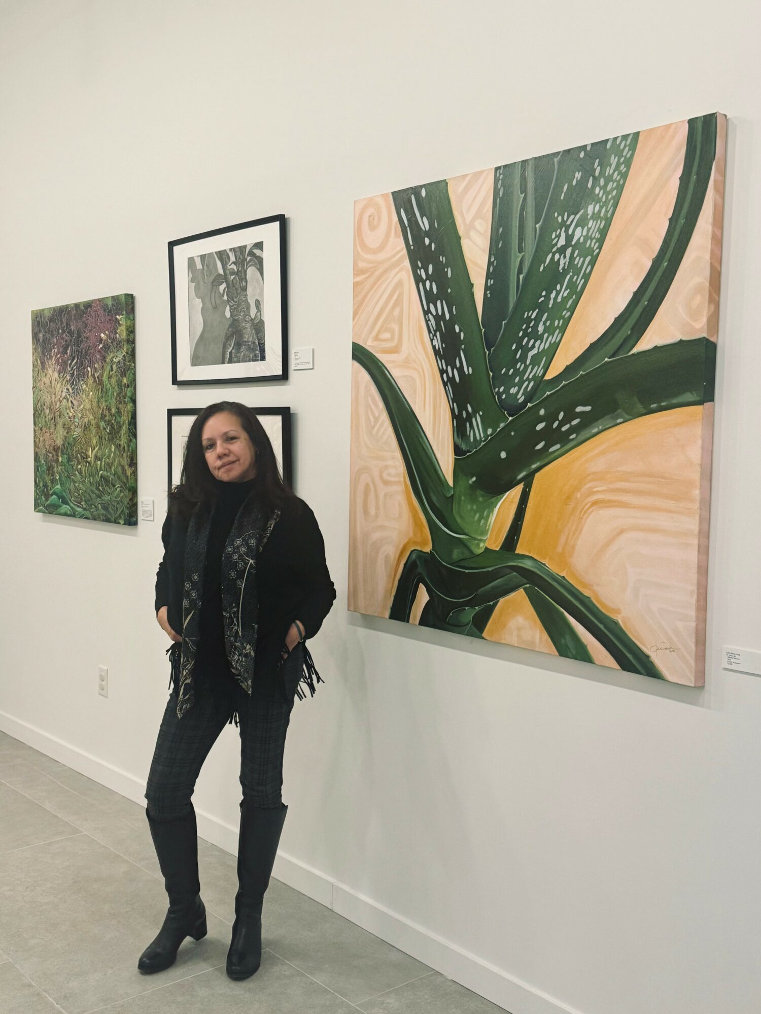 Why am I here in the United States? While living here was never a dream, it became an option when I sought a diagnosis for my then three-year-old son Nicolas. Despite the excellent doctors and clinics in Colombia, his condition was unknown. So we moved to the U.S. in 2001, just ten days after 9/11, without a return ticket. Three years later, my son, Nico, was diagnosed with Angelman Syndrome. This diagnosis became a central part of my life. Prioritizing my son’s health, therapies, and schooling meant putting my architecture career on hold. In 2004, I remarried and moved to St. Louis. St. Louis has been wonderful for my son and me, and it’s the place we now call home. I am incredibly grateful for my husband Michael and his warm, welcoming family. During weekends, you could often find Nico, my stepsons, and me at St. Louis museums and parks. For me, the museums were welcoming friends, with many paintings reminding me of my mother’s art history books. As my son’s life stabilized, I found time for myself and began to paint. I used to say I would paint when I retired, but it seemed like it was time to retire to the rest of my life. In 2012, I decided to pursue art as a career, and in 2014, I created my company, Otero Prada LLC. I wanted to paint and connect with people, so I offered customized painting parties at homes, clubhouses, churches, and company retreats, as well as workshops for museums and festivals. Becoming more aware of my surroundings and my city, particularly during the Michael Brown events in 2014, I realized the importance of art as a tool for expressing social issues, opening conversations, and bringing people together. I became interested in the Community Arts Training at the Regional Arts Commission and was invited to the CAT place-based Ferguson-Dellwood-Berkley in 2016. This program has been one of the most valuable experiences of my life.