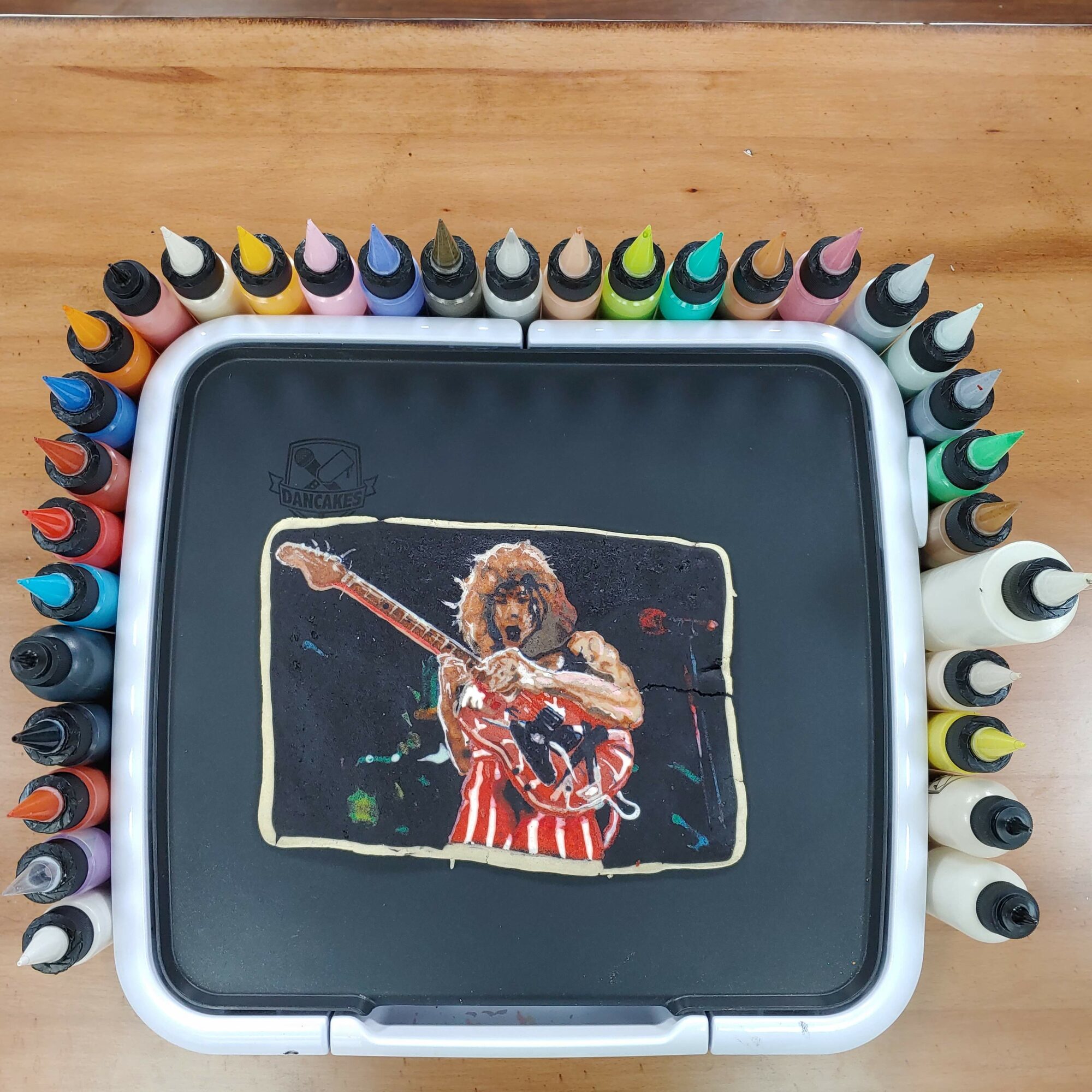 Dancakes is the first professional pancake art company. It’s a pretty small niche, even in the world of niche art, just the fact that we do this in a professional setting makes us unique. We travel, all over the world, and perform our art, live and by request. Someone can come up to us and ask to make literally anything, animal, vegetable or mineral and we’ll create a pancake of it. The only actual rule is that it can’t get us in trouble, otherwise it’s a complete free-for-all… Portraits, landscapes, logos, cartoons, memes… At this point we’ve probably made something like it before, and if not, we’ll give it a shot anyways.