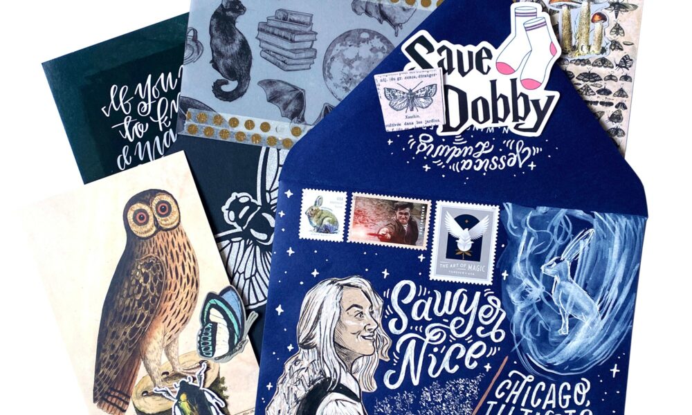 Over the years, my envelopes have gotten more ornate, detailed, and artistic so that now it’s the main part of my business! I create custom letters for customers and send them directly to their recipients, tuned to their interests, and made one-of-a-kind with illustrations, hand-lettering, and handmade elements throughout.