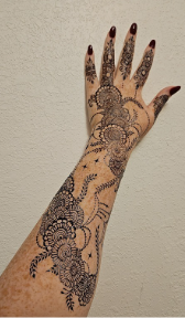 My name is Megan, and I’m the owner of Rani Henna STL, a henna artistry business based on Cherokee Street in St. Louis. I specialize in traditional and contemporary henna styles, including bridal mehndi, festivals, pregnancy henna, events, and I also offer free henna crowns for women who have lost their hair due to cancer. I started doing henna in 2017, completely self-taught, and over the years I’ve grown my passion into a full-time business. I’m internationally certified through the ICNHA and pride myself on using only 100% natural, freshly mixed henna for safe, beautiful results. My work is about more than just art—it’s about connection and creating meaningful moments for my clients. Right now, I’m expanding my offerings with henna classes, design books, and events to help share the beauty and history of henna with even more people. I am the only certified henna artist near St. Louis.