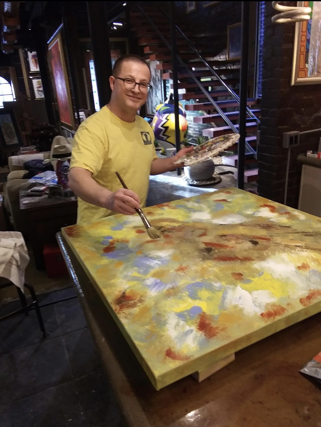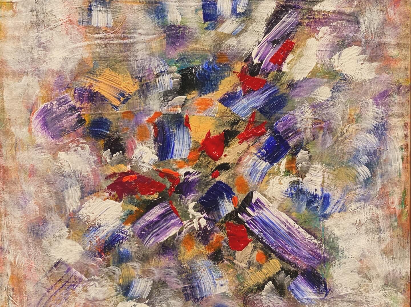 I love painting because it permits a much more creative personal expression. Classical music is very structured, and it is the job of the classical pianist to play the music exactly as the composer intended. In other words, there is not a lot of room for creativity on the part of the musician. Abstract painting, on the other hand, is all about freedom of expression–there are no rules and no guardrails. Creativity can simply flow. Moreover, I love talking with people about my art. That is why I like doing art fairs. Those venues allow me to interact with people who find my art interesting. Over time, not only have I developed a following of collectors who return to these fairs year after year, but it also allows my work to be seen by many folks who are viewing it for the first time. Abstract painting encourages a free-wheeling discussion and interruption of what I have created, and it makes me happy to discover what others see in my work.