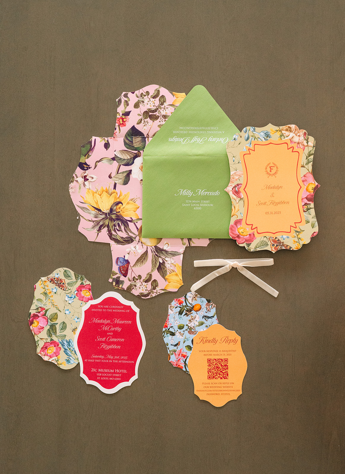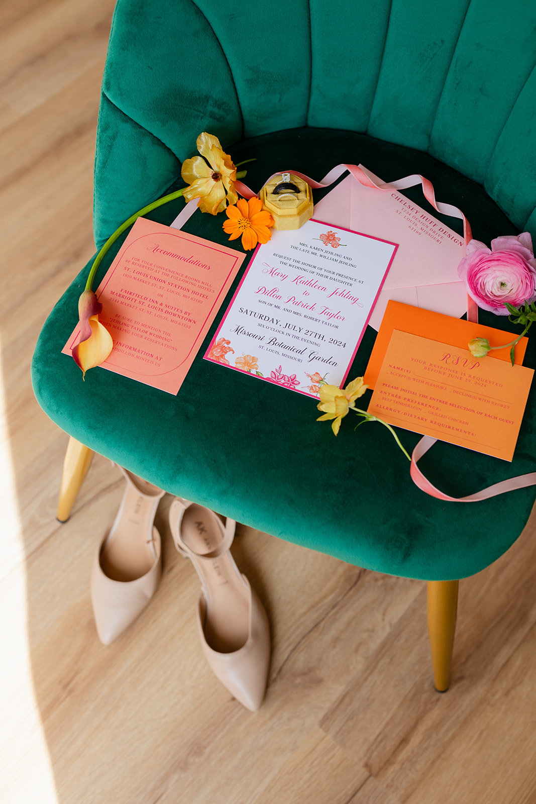 My name is Chelsey Huff, and I’m the owner and designer behind Chelsey Huff Design, a wedding and event stationery studio based in St. Louis. I’ve been designing for over a decade, and my background in branding shapes everything I create. I don’t just design pretty paper, I help couples and event hosts tell a cohesive visual story through their invitations, signage, and day-of details.