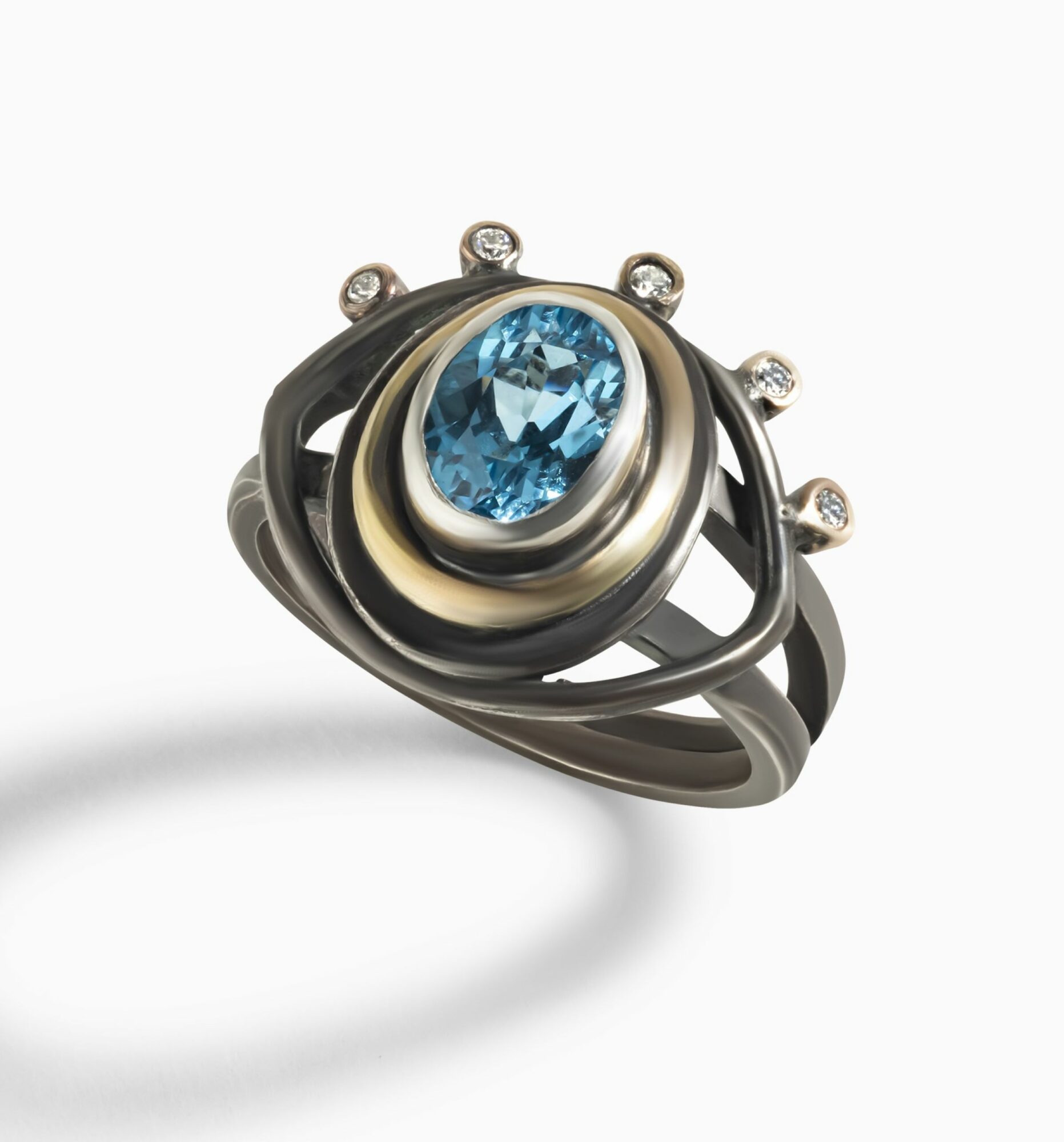 The name reflects a new artistic identity, one focusing on individual, custom work incorporating ethically mined gemstones whose origins are easily traceable. I will continue to explore my design vocabulary of metal smithing techniques, but at this point in my life, I feel drawn to supporting sustainable practices and ethical processes through my current work. The gemstones I use are mined by women-owned collectives in Sri Lanka, Thailand, and Tanzania. My favorite of these stones are cut in the US by only three cutters, whose names I know. Unlike in the general market, the stones I see are not colored uniformly or have perfect clarity. Rather, they show beautiful internal color bands, fine lines like silk, and visible crystals that tell the story of how they were made inside the earth.