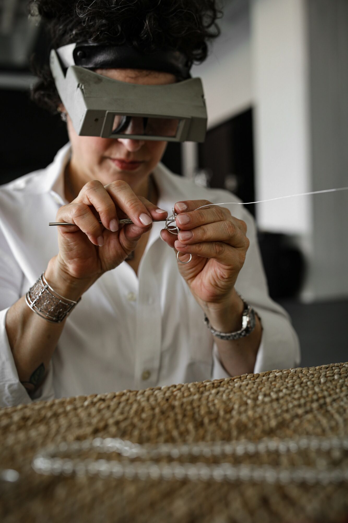 Hi. I’m a jewelry artist. I live in St Louis, MO. I’ve been in business since 1991, under the name Uncommon Threads Jewelry. I chose that name because when I first started out, making jewelry by working fiber techniques like weaving or crochet, in precious metals, was my thing. My grandmother taught me how to sew, knit and crochet when I was a child. Using fiber techniques in metal was a way of connecting to the love I felt for her.