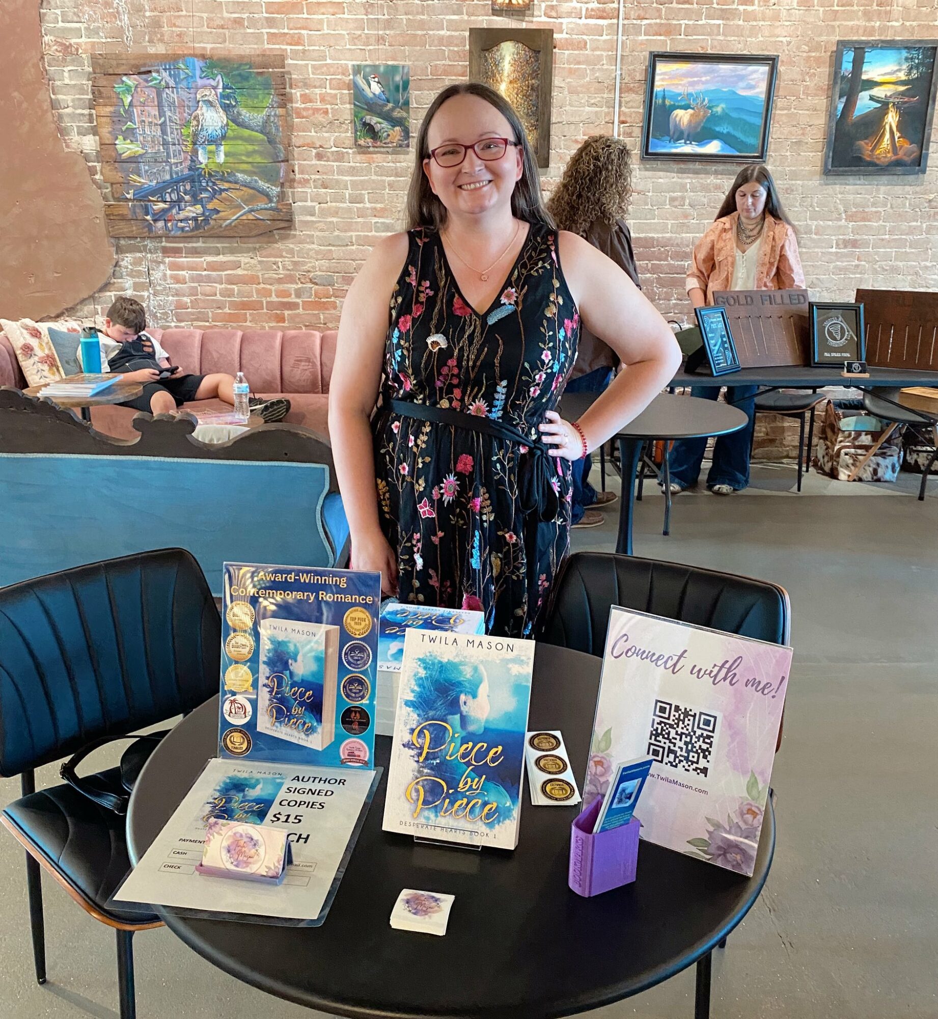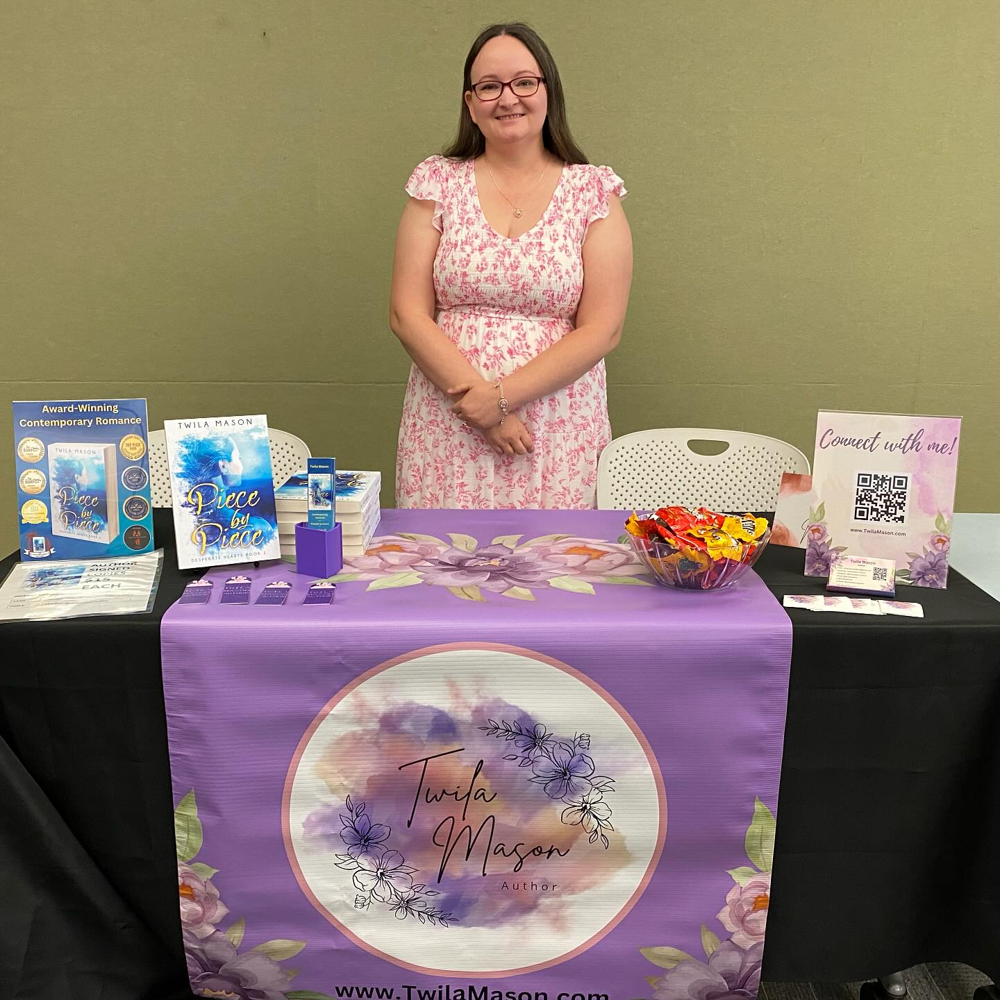 I am an award-winning contemporary romance author. My work explores raw emotions and the complexities of life while finding hope within every obstacle. Piece by Piece is my debut novel and features the friends-to-lovers and marriage of convenience tropes. It is book one in the Desperate Hearts series of interconnected stand alones. That means each story is complete by itself, but you’ll get to see the same places and familiar characters sprinkled in each other’s books. There are heavy themes like addiction, recovery, loss, mental health struggles, and some mild violence, but my characters overcome it all through determination and love. Having had some mental health struggles myself, I find it’s important for people to see those types of issues represented in literature. No one should ever feel alone or like no one understands them or what they’re going through. Step by Step, book two in the series, will be releasing February 2, 2026. Book three in the series, Dream by Dream, is currently with my editor and will release late 2026 or early 2027.